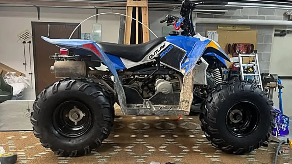 It is a 2014 blue, black and white Polaris Outlaw 90. It was stolen sometime Tuesday night on North First Street.